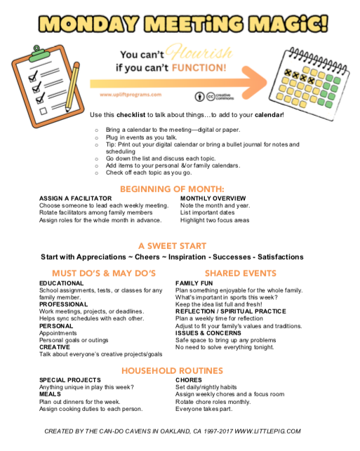 Here's the cheat sheet for all the meetings. Print it out and keep it handy! Monday Checklist Guide.pdf